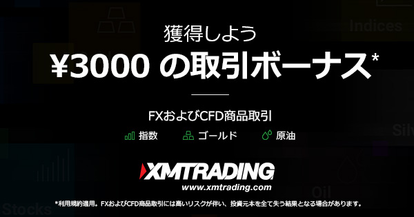 XM:入金ボーナスは3,000円、口座開設ボーナスは5万円まで100%、それ以上500万円まで20%